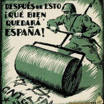 La biblioteca del colegio estaba llena de hagiofragías falangistas y cristeras. Tengo muy presente la siniestramente cursi novela del rosáceo Rafael Pérez y Pérez. Se titulaba Dos Españas y su argumento mucho tenía de Televisa y poco de prosodia: un joven rubio y de ojos azules, miembro de una organización juvenil católica, se iba a la guerra para pelear al lado del caudillo enano que acababa de recibir la bendición del jurásico Arzobispo de Toledo. El jerarca no sólo había bendecido a los asesinos, sino a sus armas. La escena de la lluvia de agua bendita sobre los cañones y las ametralladoras no tenía desperdicio. El joven aprendió a pilotear un avión, alemán por supuesto, e hizo estragos en la aviación republicana. Terminada la contienda regresó a su pueblo valenciano, fue recibido como héroe, lo atiborraron de paella y de melones, se casó con su férreamente casta noviecita y un crepúsculo mediterráneo inauguró sus años de santa y comedida felicidad. La novelística cristera era muy parecida. Héctor, escrita con seudónimo por el canónigo Ramírez de la catedral de Durango, otorgaba la santidad anticipada a un joven de buena familia que se fue a pelear a la cristiada. Entre tantos santos y santas era difícil explicarse los aspectos más violentos y crueles de las dos cristiadas y de la “cruzada nacional”.