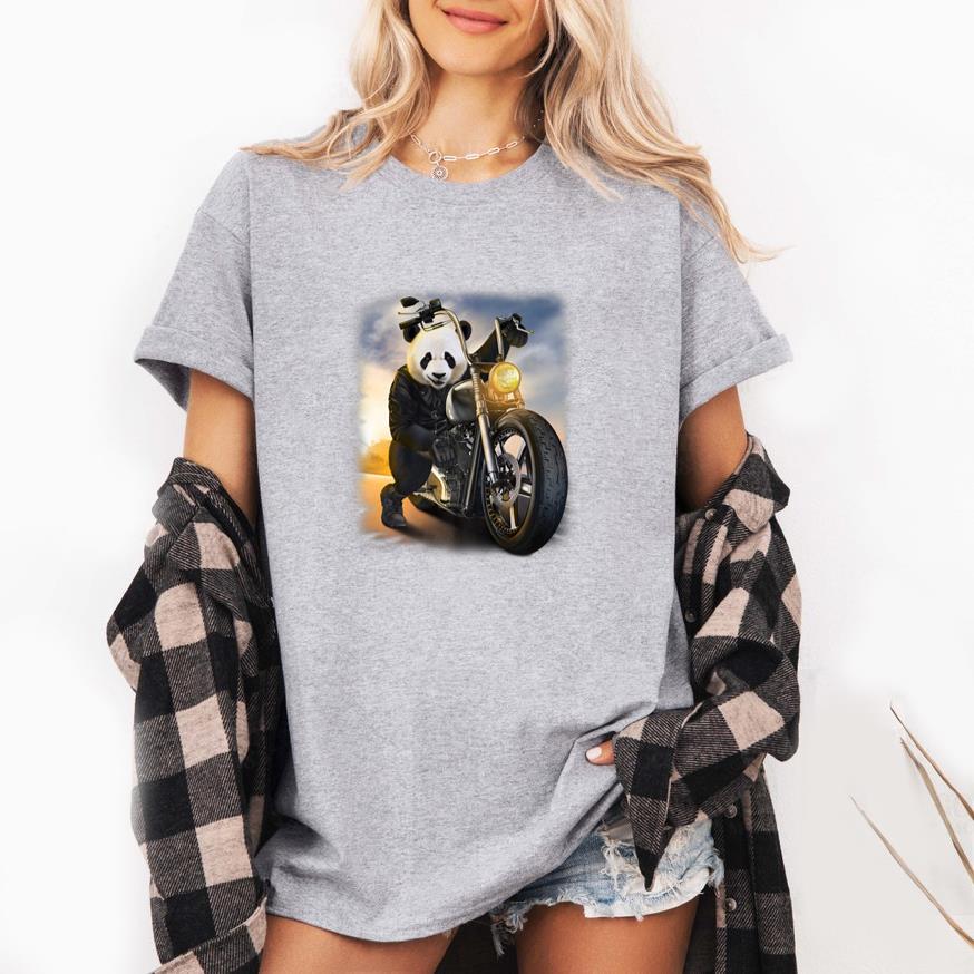 Biker Giant Panda Riding Chopper Motorcycle T-Shirt
